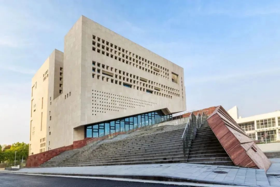 图书馆大楼整体看来像是摊开的书本,中间塔楼的结构更是足以让许多同济人引以为豪,人们纷纷惊叹于它所展示的结构的美感。