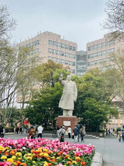 走进四平路校区的大门,抬头便可以看见毛主席微笑挥手的塑像,仿佛是朝着每一个学子招呼,昭示着美好的未来。同济校园中的毛主席塑像是上海高校中的第一尊,也是保存至今最完好的毛主席塑像之一.