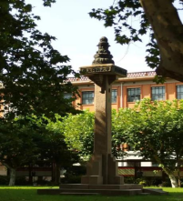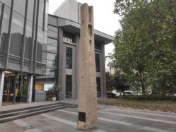 在毛主席像两侧的草坪中央就是国立柱,分别名为“既往”“开来”的两根纪念柱对称而立,两根纪念柱柱身上的字体拓自王羲之的墨迹,激励着同济人在时代的浪潮中不断创新,继往开来。