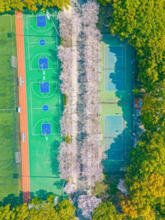 爱校路两侧种满了樱花树,每到春季,爱校路上粉色的樱花花瓣层层叠叠