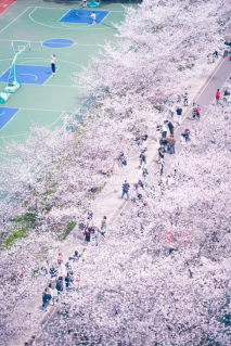 时而随风飘落,故爱校路也被称为“樱花大道”。