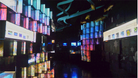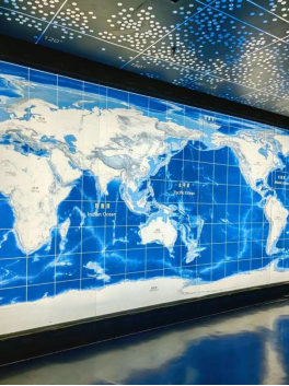 随着地上指路的流动鱼形图案走进这座探索馆,像是穿越了人类与海洋相识相遇的时光,那些活跃于深海的大量珍奇生物,多姿多彩的海洋微体生物群,以及“黑烟囱”喷出的海底热液幻影等等。被“全息幻影成像”科技展示,每一位来到这里的同学,都会被海底世界的璀璨和纵深感触动。